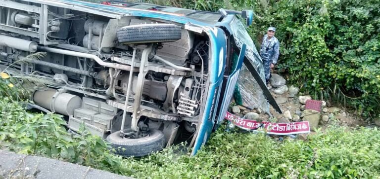 काठमाडौंबाट रुकुम पश्चिमको राडी आउँदै गरेको बस रिठ्ठामा दुर्घटना, यात्रुहरु समान्य घाइते